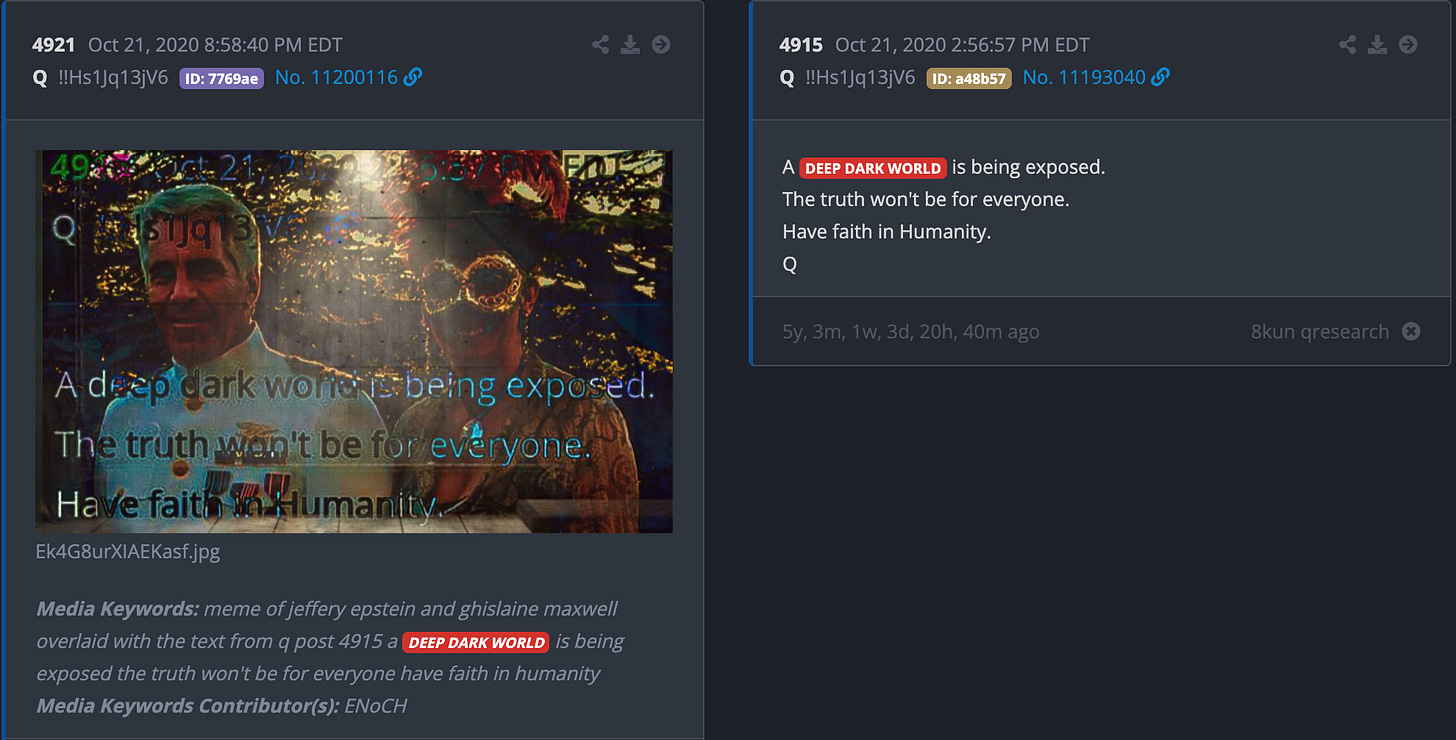 There are 69 Q posts containing the name Epstein. They are located HERE. Read them in chronological order.